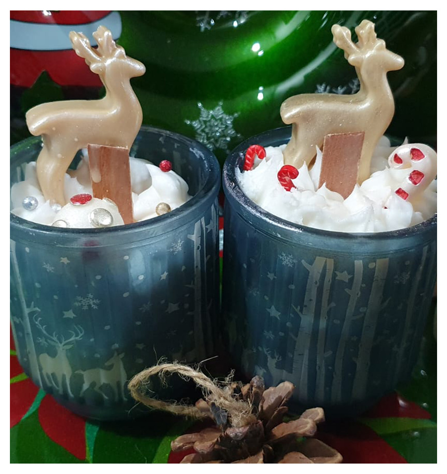 Material: Cera de soja en vaso con efecto nevado y caramelos decorativos