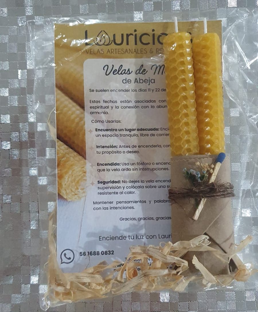 Este hermoso set de velas está elaborado con cera de abeja pura, conocido por su aroma dulce y propiedades relajantes.